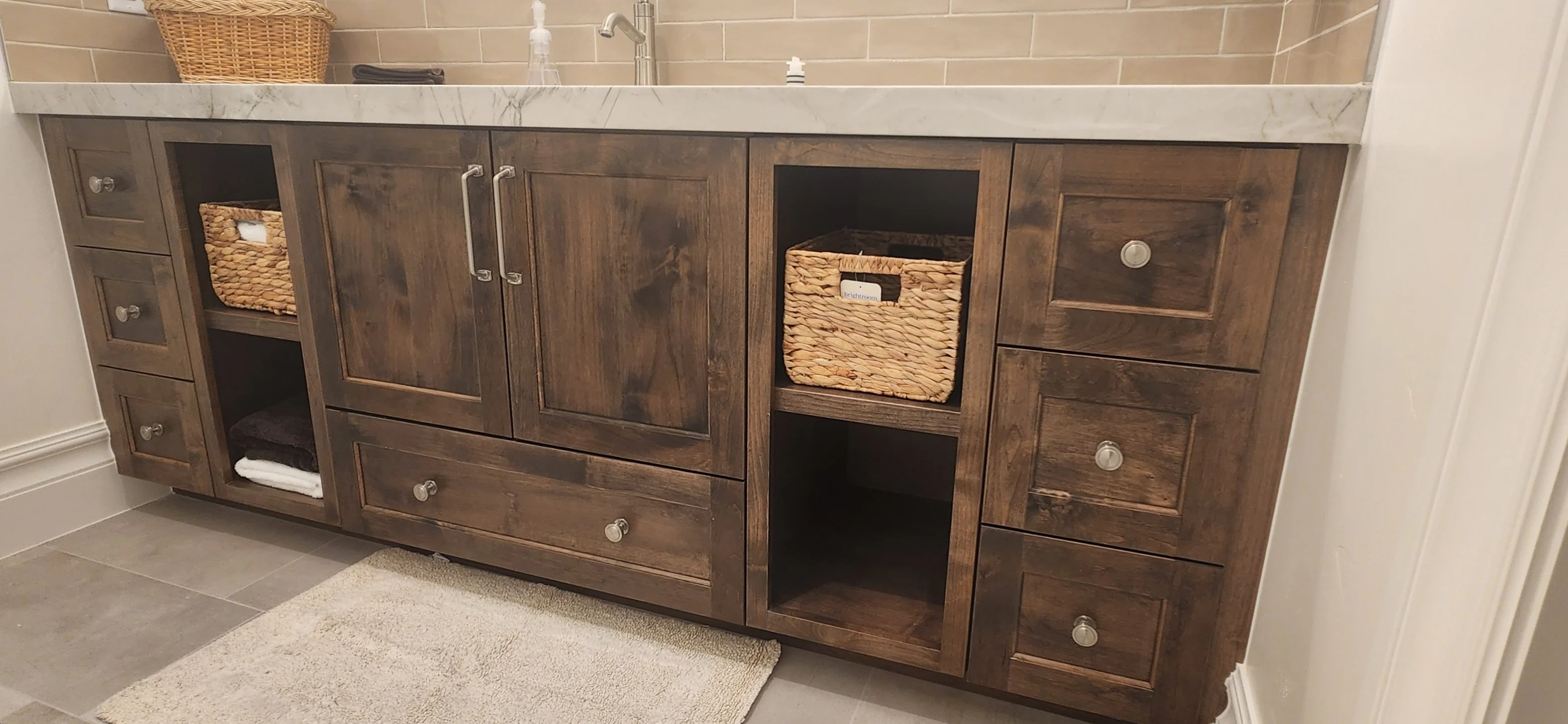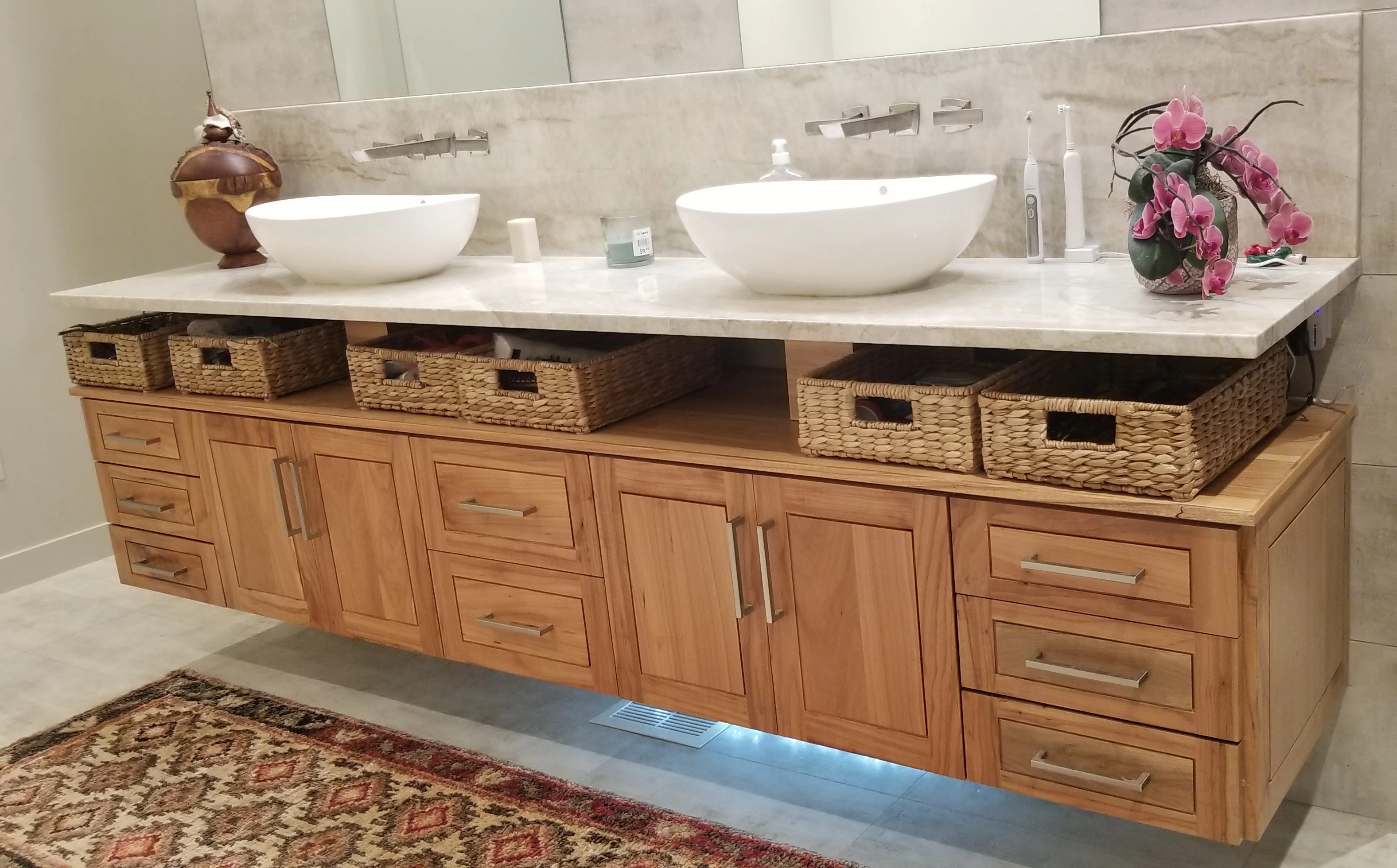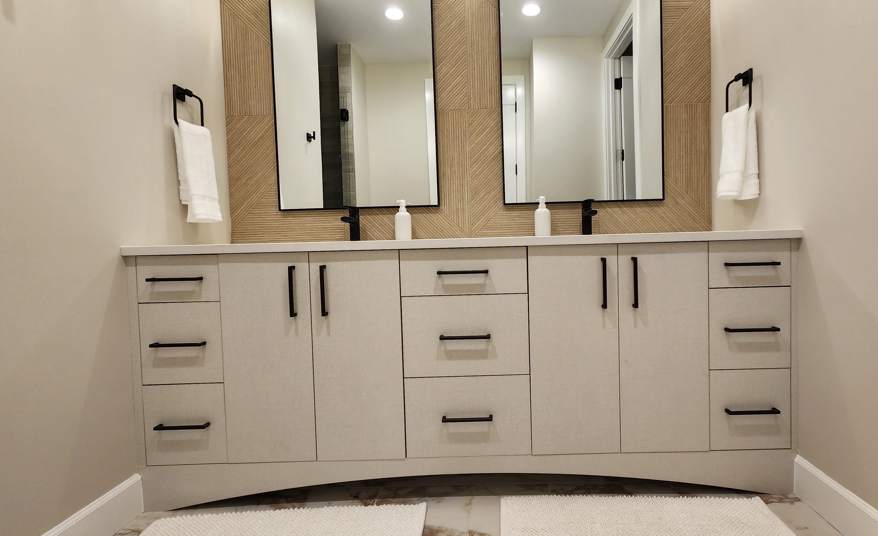 Elegant bathroom vanities and cabinetry, blending functionality with refined craftsmanship for a timeless look.