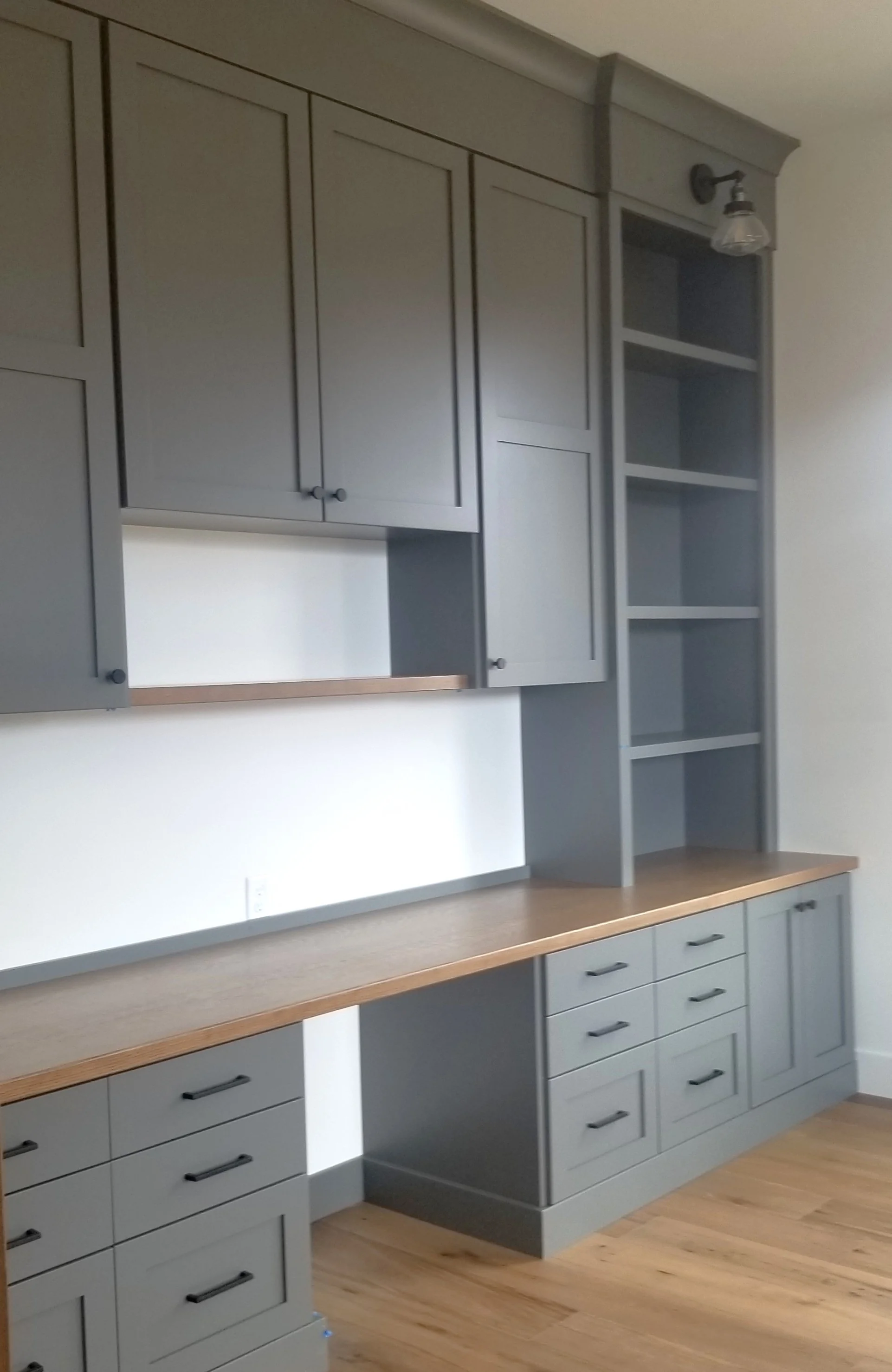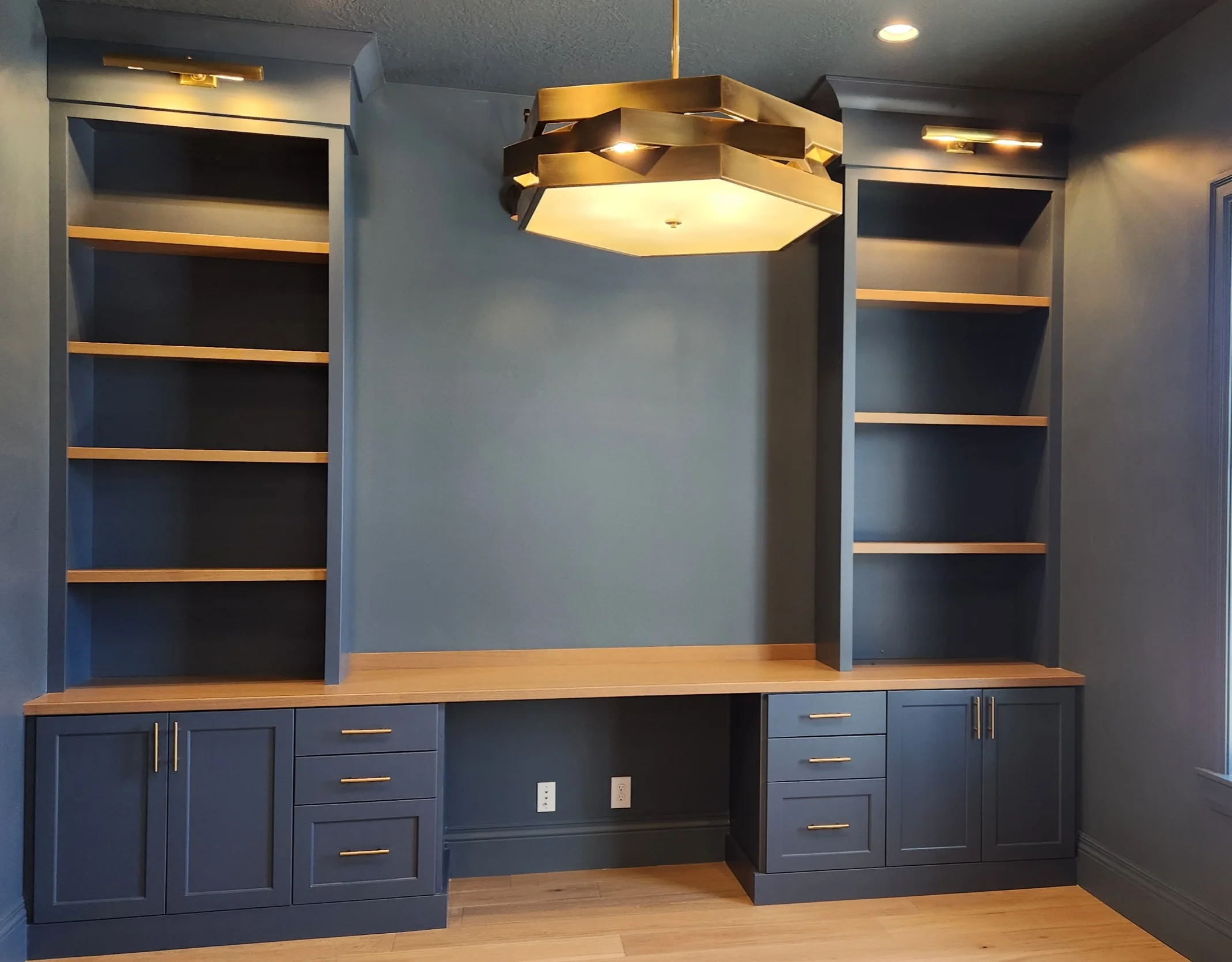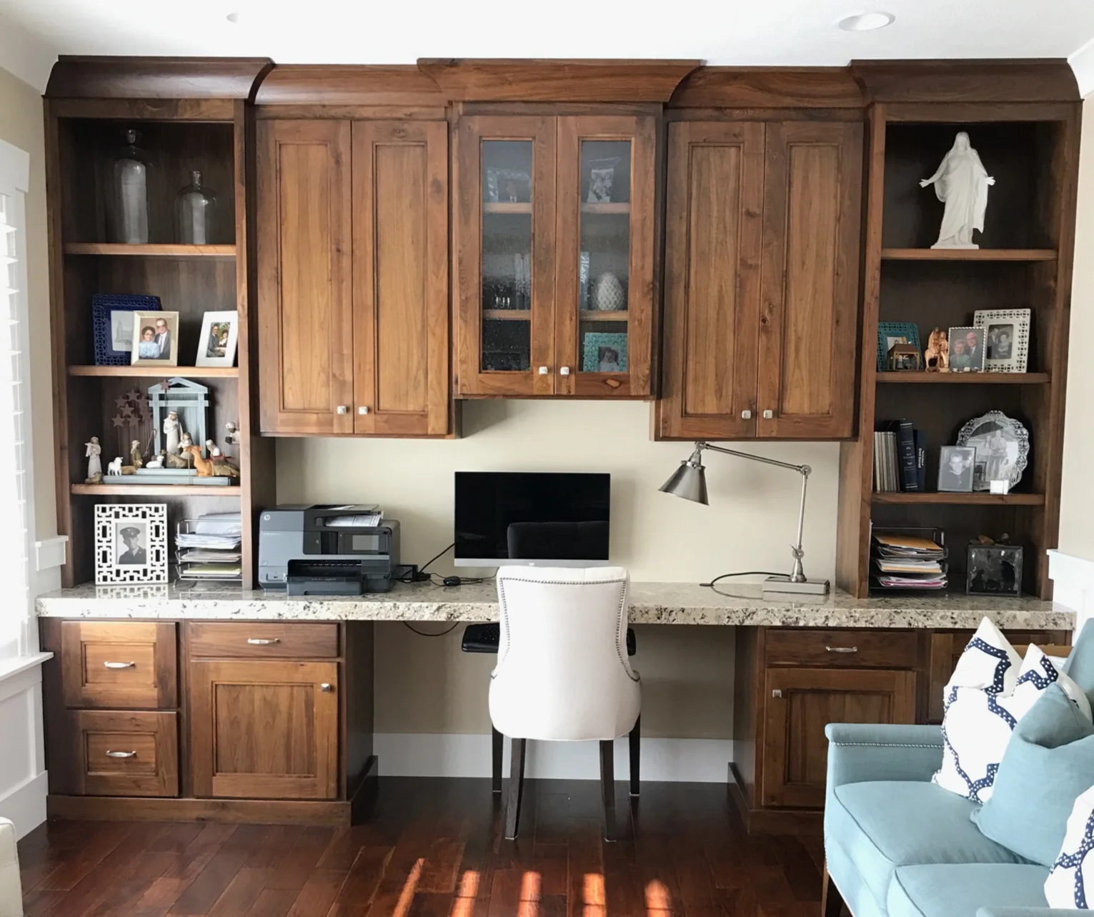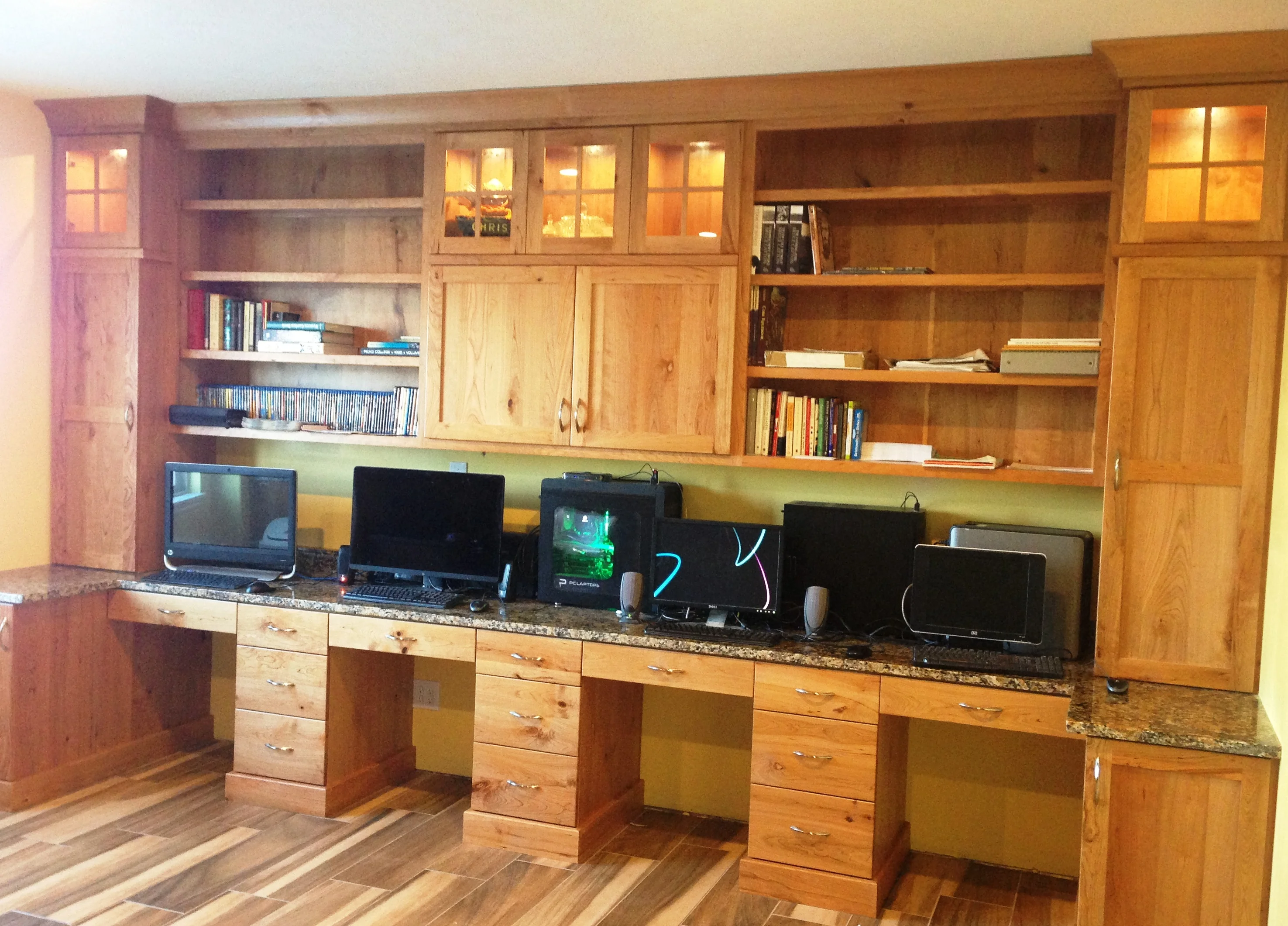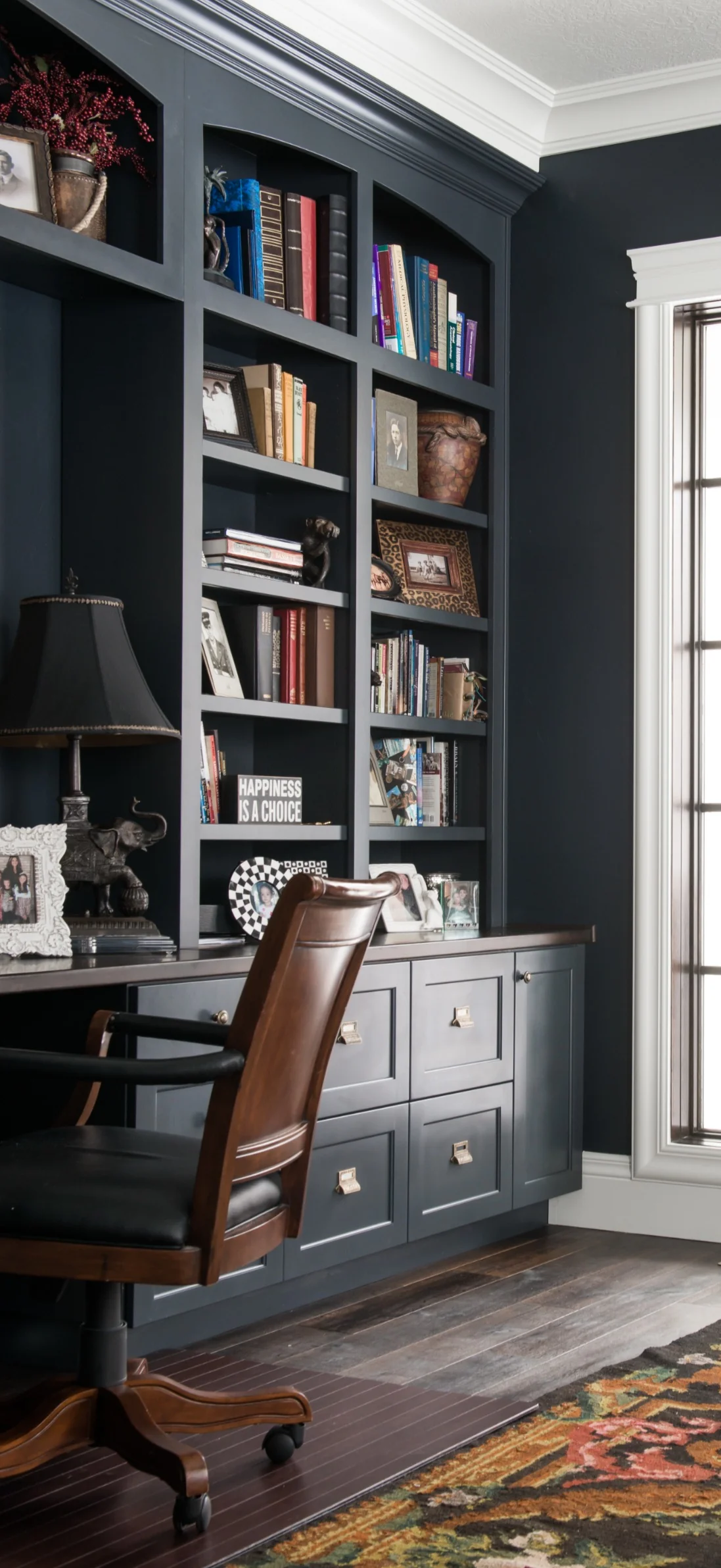 Sophisticated home office cabinetry with custom desks and organizational systems.